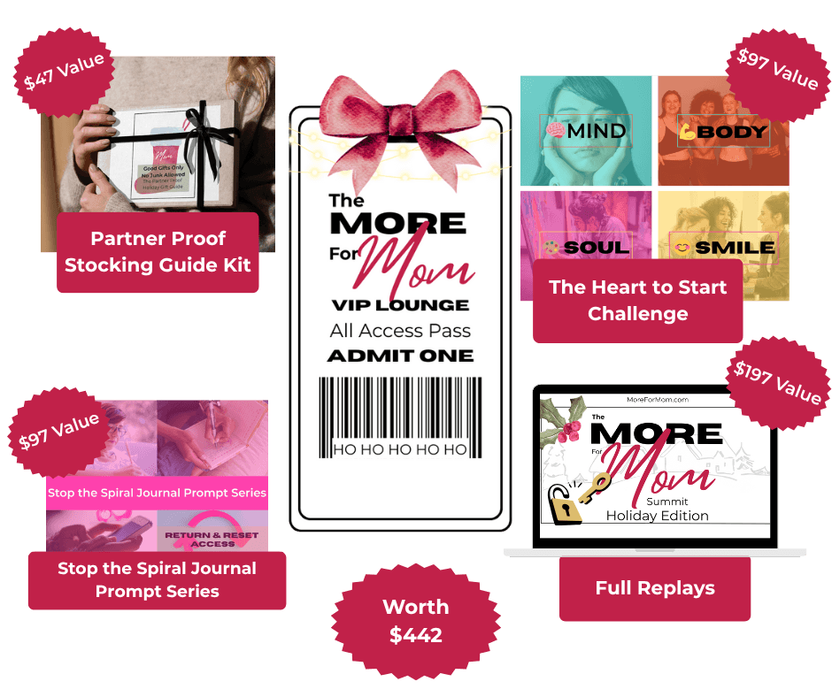 Miss the live event? No problem! Grab the replays now for $97 and get access to every session, every bonus, every moment of the More for Mom Summit.